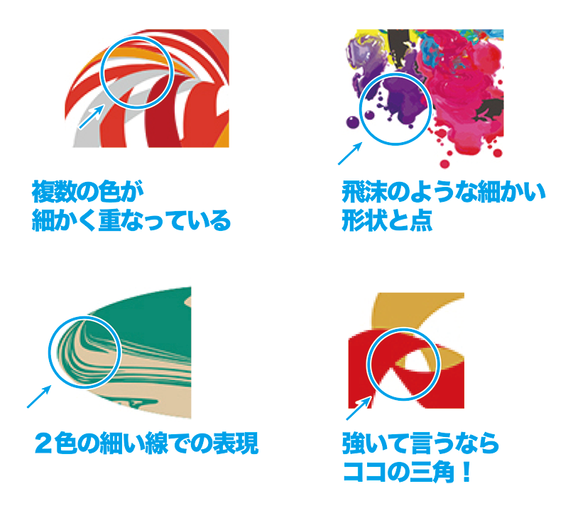 印刷では、0.5mmずれただけでも近接した色とぶつかり細かいエッジが潰れてしまいます。