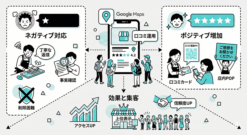 このように、Googleマップの口コミは「怖いもの」ではなく、運用次第で集客と信頼づくりに活かせるメリットの大きい機能と言えます。