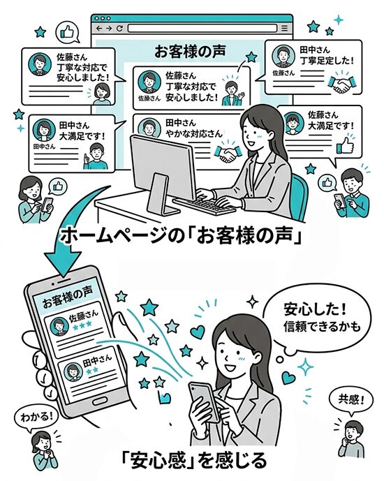 「お客様の声」があると、より一層、ホームページが良いイメージになりますね。