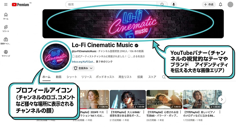 「なんとなくチャンネルを作る」のではなく、統一感のあるデザインを作り込むことで、視聴者の記憶に残るチャンネルになります。結果的にファンがつくようになり、チャンネル自体が盛り上がっていきます。