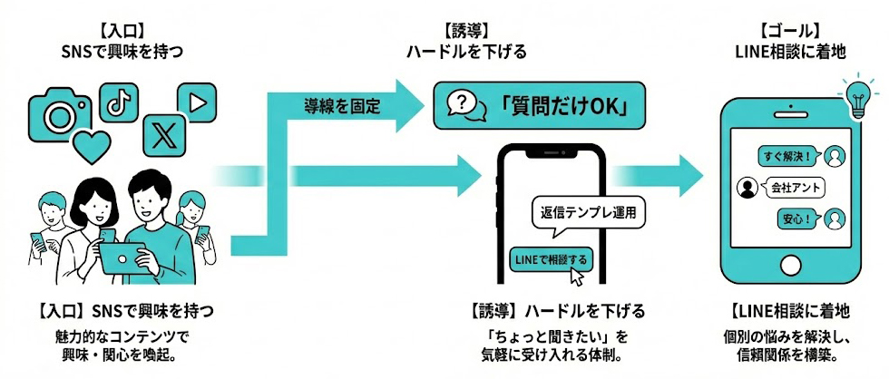 「入口」を作れば、そこからLINEや採用ページ、YouTubeなど次の導線も組み立てやすくなります。