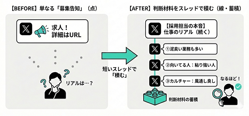 採用が難しい時代ほど、必要なのは「発信の気合い」ではなく、候補者がどこで会社を知り、どこで情報を集め、どう判断するか——その前提を外さないことです。