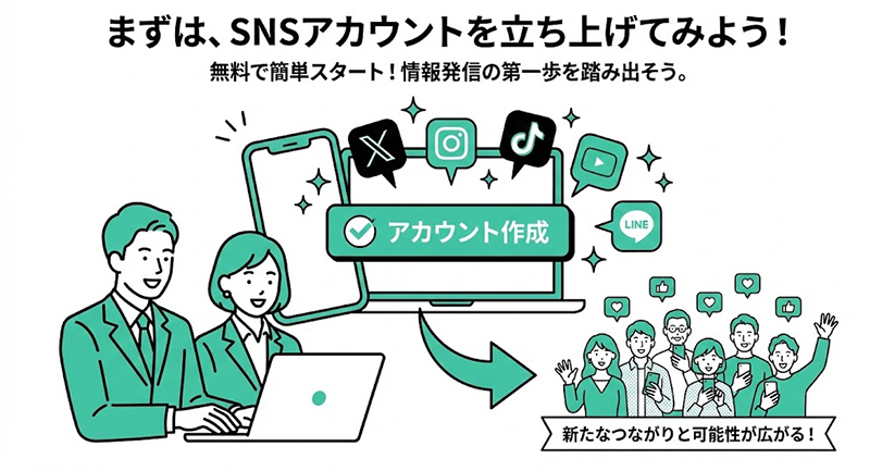 大切なのは、すべてのSNSを網羅することではなく、自社が継続できる範囲で、できるところから着手すること。小さく始めて、運用しながら整えていけば十分成果につながります。