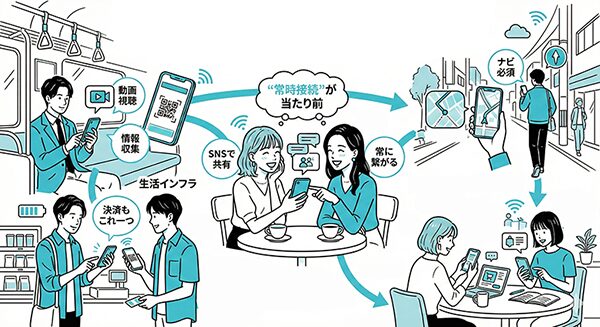 インターネット接続端末としてのスマートフォン利用は、2012年を境に急伸し、その後は高水準で定着しながら伸び続けていることが分かります。